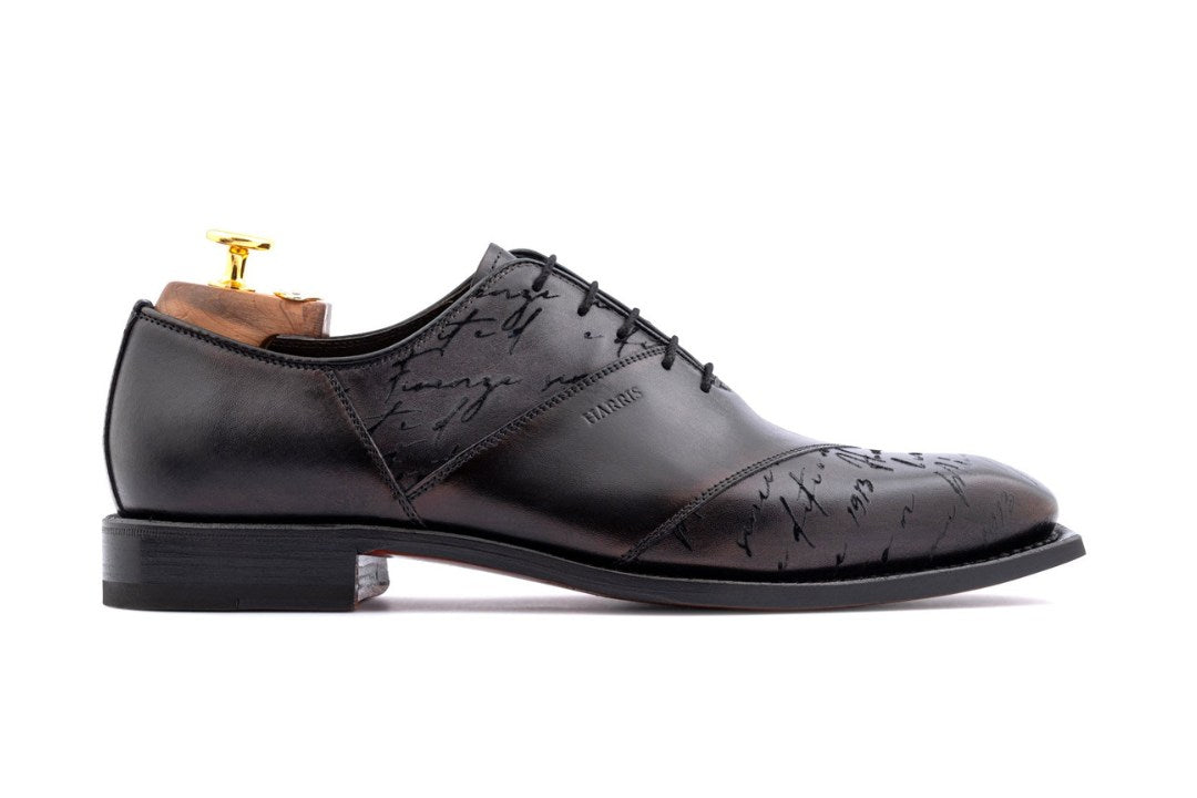 Elegant Oxford Strin mit faszinierenden und zarten Linien. Hergestellt aus hochwertigem Leder, das von Hand bemalt und schattiert ist, angereichert von mühsamen Nähten, die das gesamte Obere und die feine Textur mit den Signaturen Harris Florence, des ikonischen Symbols des Maison, umarmen. Es zeichnet sich durch die komplexe, aber äußerst effektive Verarbeitung aus, die das Modell resistent und gleichzeitig sehr bequem macht.