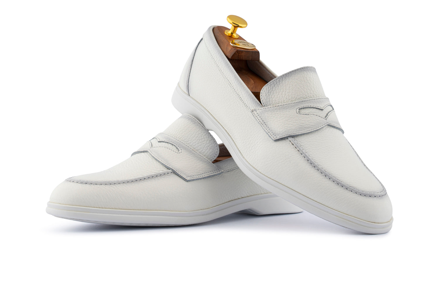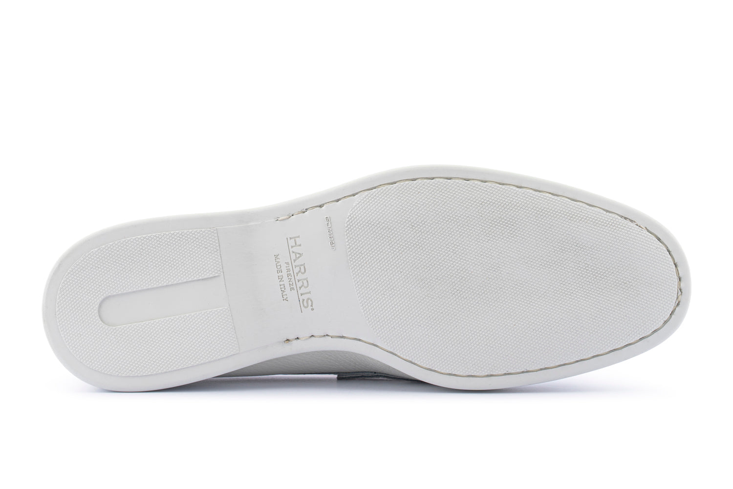Pelle morbida effetto alce dipinta a mano per un look rilassato ma sofisticato. Dotato di suola in gomma leggera color bianco, questo mocassino sfrutta la tecnica Blake Rapid per il massimo benessere.