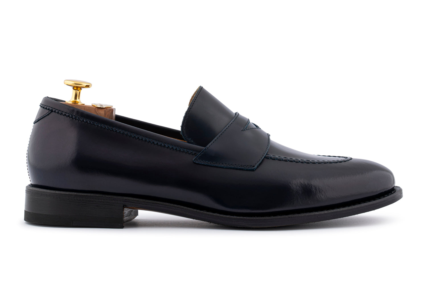 Questo mocassino è realizzato in pelle di vitello spazzolata lucida nella raffinata tonalità bordeaux, impreziosito dal passante in pelle e dalla cucitura a vista sul bordo, segno distintivo della tradizione calzaturiera italiana.