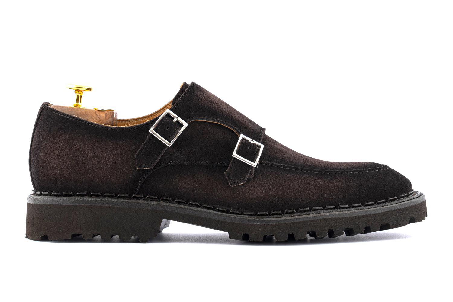 Un modello che unisce eleganza, solidità e personalità autentica. Questa doppia fibbia è realizzata in camoscio sfumato sui toni del marrone, la cucitura sul bordo ne sottolinea la cura nei dettagli mentre la suola in gomma carrarmato con guardolo cucito in una calda sfumatura giallo miele dona carattere e un tocco contemporaneo.