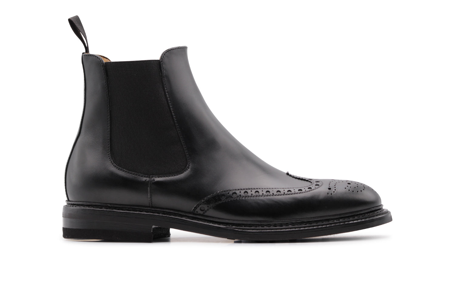 Un’eleganza essenziale: polacchino in pelle di vitello liscia pieno fiore con elastico laterale, suola in gomma e guardolo cucito. La costruzione Blake Rapid assicura leggerezza, stabilità e un’ottima resa nel tempo.